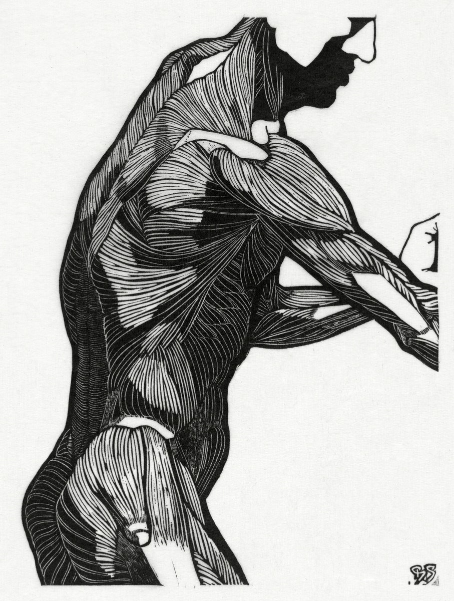 Kunstwerk: Anatomical study of a man’s lateral and arm muscles (1906–1945) by Reijer Stolk. Original from the Rijksmuseum.